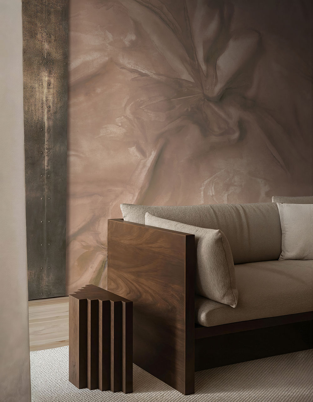 Flow è una superficie fluida e luminosa con forme morbide che evocano un gesto scultoreo, creando pareti vive e rilassanti. La decorazione si trasforma in atmosfera sensoriale, ideale per camere, wellness area e zone di transizione dove il lusso emerge da luce, materia e silenzio.