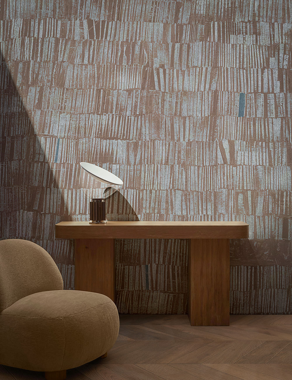 Scriptum è una superficie materica con segni ripetuti e stratificati, che trasformano la parete in una pagina architettonica silenziosa. Elegante e equilibrata, è perfetta per interni minimalisti e progetti di design sofisticati.