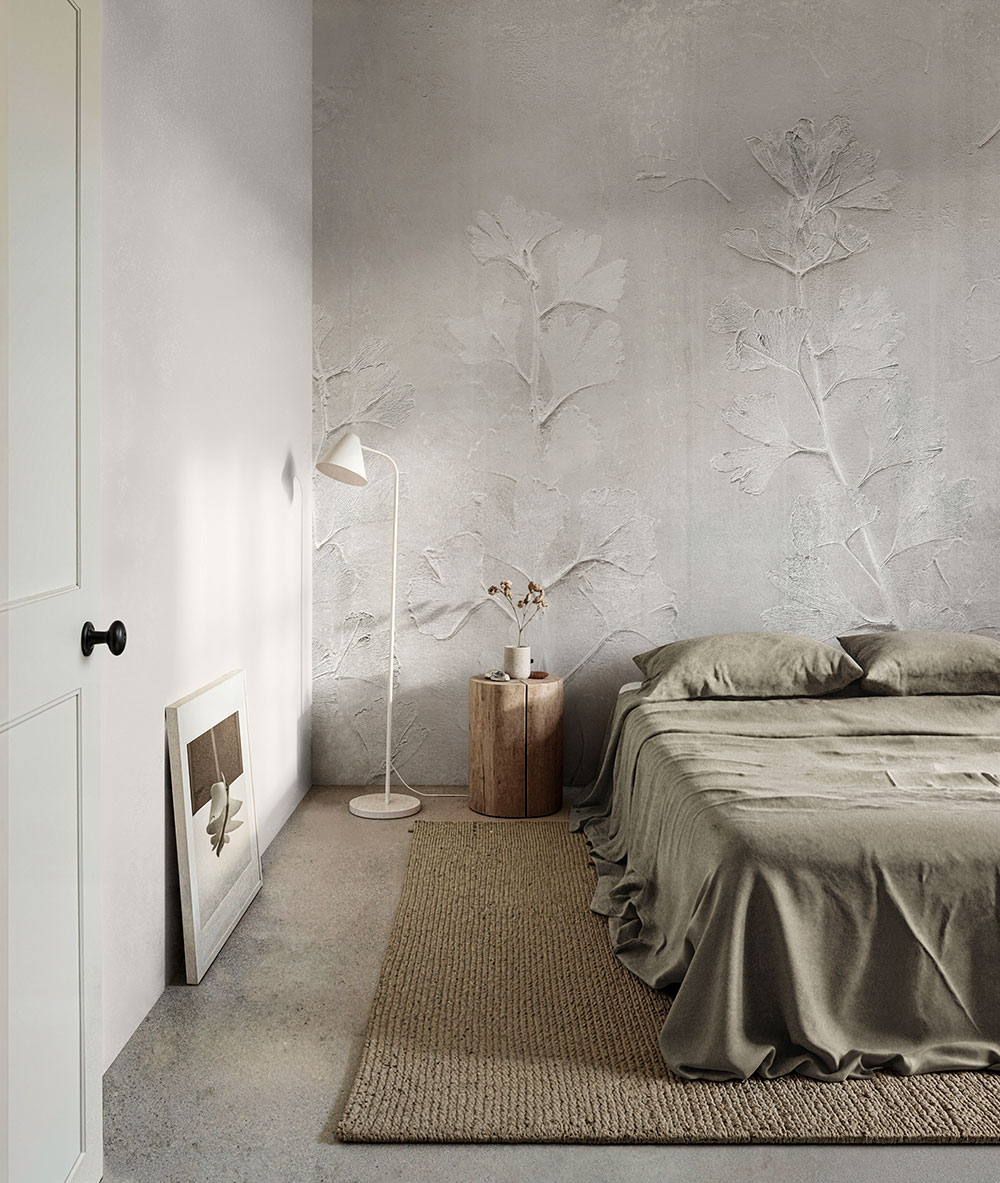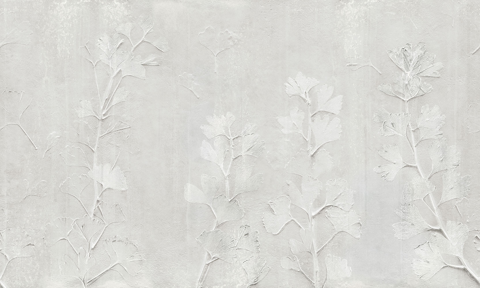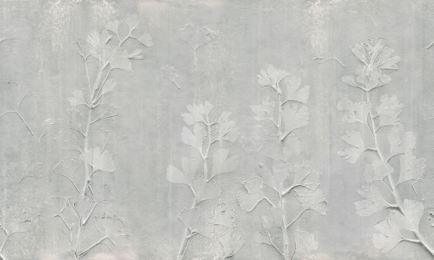 Vestigia è una superficie che cattura tracce del passato, come foglie e rami impressi in calce e gesso.