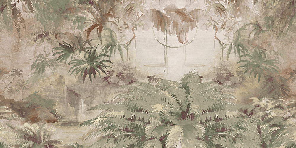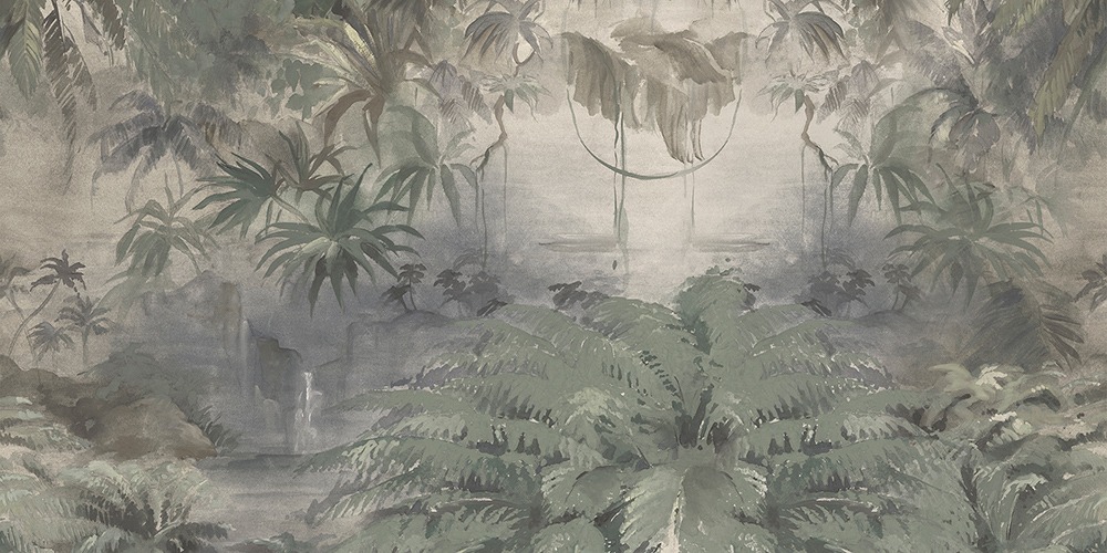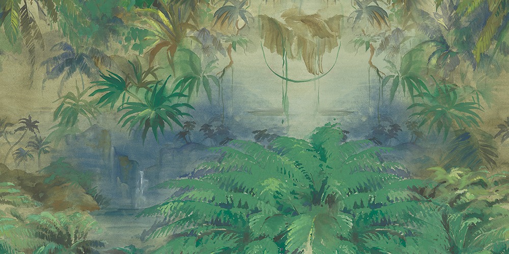 Stupore e meraviglia, uno scorcio tropicale apre un varco sulla parete. Sembra quasi di sentire l’acqua di un ruscello e gli uccellini cantare.